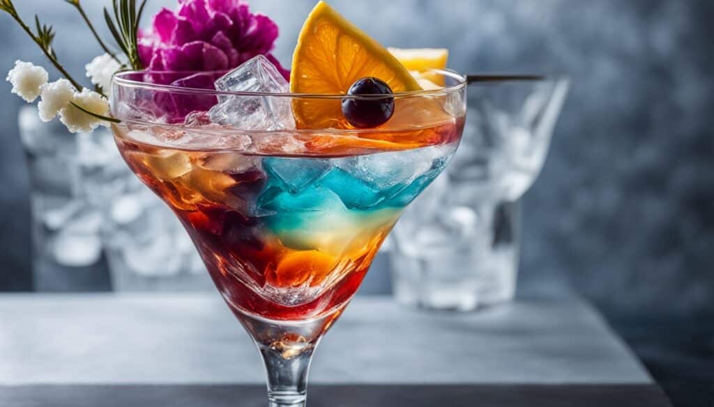 In der Welt der Cocktails sind verschiedene Eisarten wichtig. Jede Art verändert Textur und Kälte der Getränke. Das beeinflusst, wie der Cocktail schmeckt und aussieht. Ob Crushed Ice oder Würfeleis, jede Sorte bringt Vorteile für bestimmte Drinks.